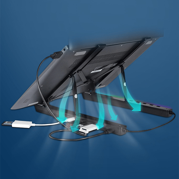 This cooling stand with silicone protection, non-slip and does not scratch the computer, can hold your laptop in place and protect any surface it is placed on,avoid unnecessary slipping during typing and reading.