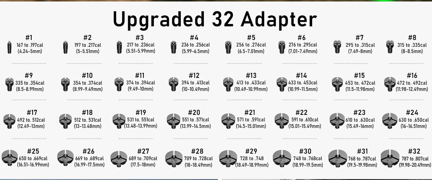 Enhanced precision with 32 adapters: Our laser bore sight kit includes 32 uniquely numbered adapters, ensuring compatibility with calibers ranging from .17HMR to 12GA. Each adapter comes with a different serial number and clear instructions for quick and accurate selection, making your setup easier and more precise.