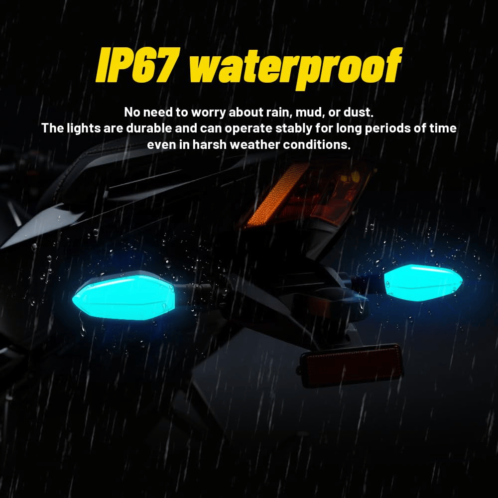 Built from ABS + PC with IPX6 waterproofing — rain, mud, and grit won't kill the show. Designed for real riding conditions, not just the showroom.