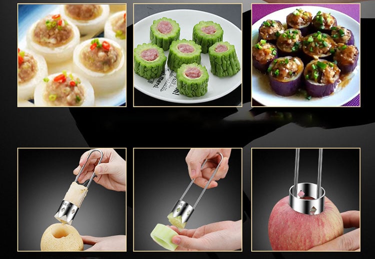 🌟 Multifunctional use: In addition to core removal, it can also be used to dig holes and process other fruits and vegetables, suitable for making various dishes, such as cucumber stuffed with meat, nut sandwiches, etc., to take your cooking creativity to the next level!