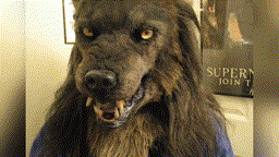 Fierce werewolf snarl + sculpted features = maximum shock value